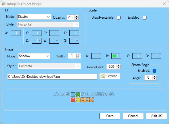 The ImageEx Object Plugin for AutoPlay Media Studio 8 and 9 (AMS8/AMS9) provides advanced image manipulation features, including border effects, support for rounded images, various visual effects, and the ability to rotate images at custom angles. These features help create dynamic and sophisticated visual interfaces.